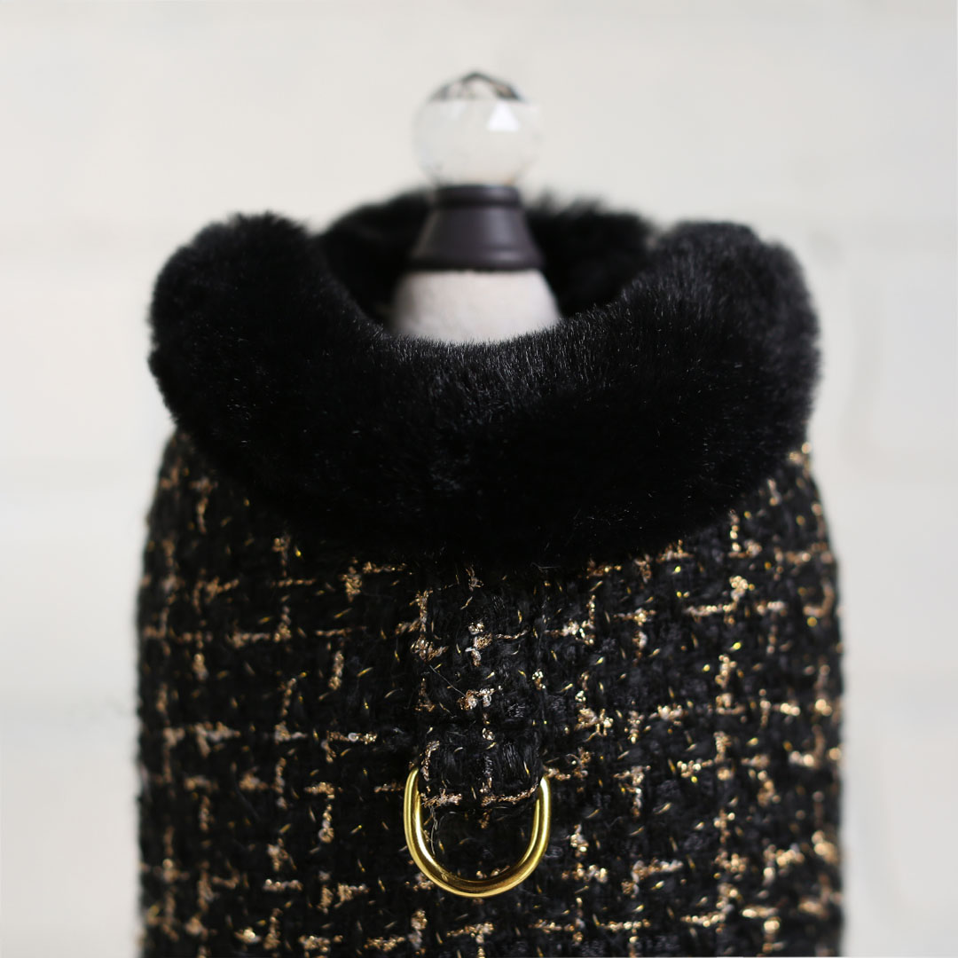 Your precious pooch will look regal in the Chantel Tweed Dog Coat by Hello Doggie. Our new coat collection was released just in time for the fall/winter season. When designing this coat we had the pooch in mind, our fur babies get cold too while they're out on the town for holiday shopping or a walk in the park. The coats are made from a beautiful soft tweed fabric and are lined with faux fur for a timeless design  and to keep out that extra chill. These coats are perfect to pair up with your favorite Hello Doggie sweater, featuring adjustable velcro straps for a perfect fit when adding layers. It is easy to care for, delicate wash with no softener or bleach and air dry. Our coats are fashionable and most importantly comfortable to wear. Each Coat has a matching harness, sold separately. Limited Edition MSRP $84.00 * Coats are handmade sizes may vary slightly. Made in USA.