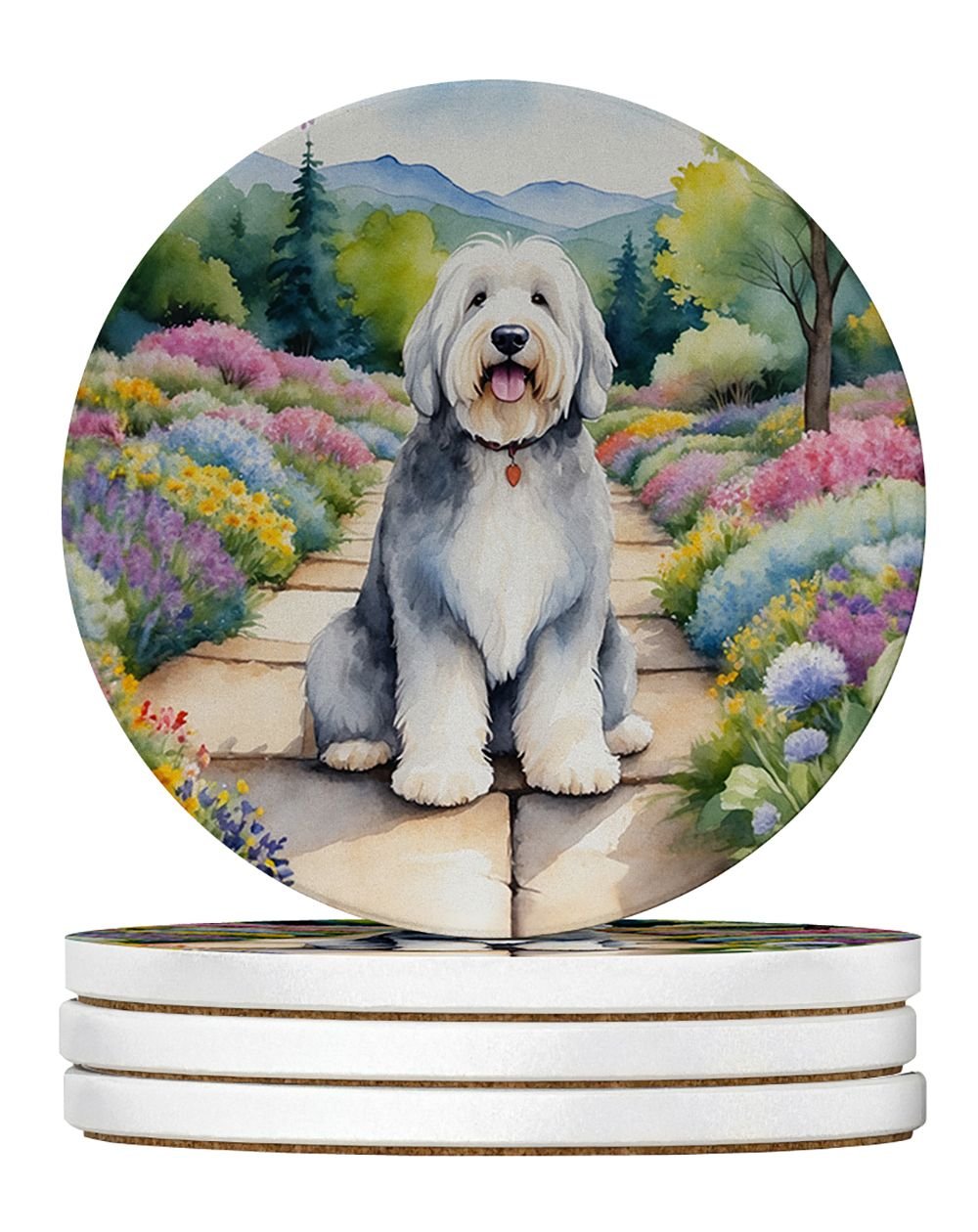Home > Old English Sheepdog Spring Path Large Sandstone Coasters Pack of 4 Absorbent Round Coasters Decor Gifts for Men or Women, 4 in, Multicolor