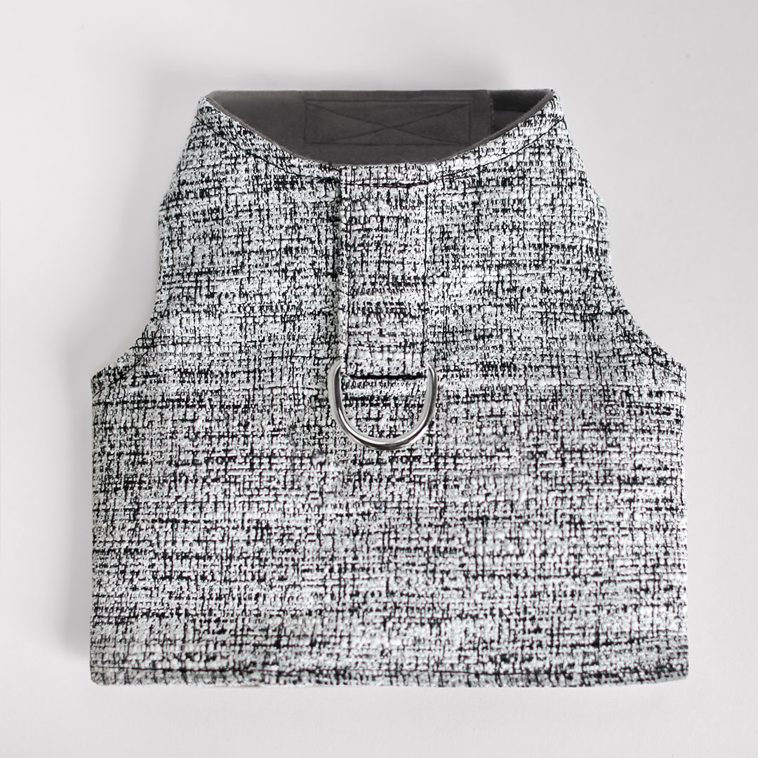 Your precious pooch will look regal in this Zha Zha Dog Harness By Hello Doggie. The beautiful soft tweed blend fabric has a timeless design that is sure to please the eye of any fur baby mom or dad! This harness features adjustable velcro straps for easy wear and a gold d ring that ensures your pup stays safe at all times. Limited Edition MSRP $64.00 * Harnesses are handmade sizes may vary slightly. Made in USA.